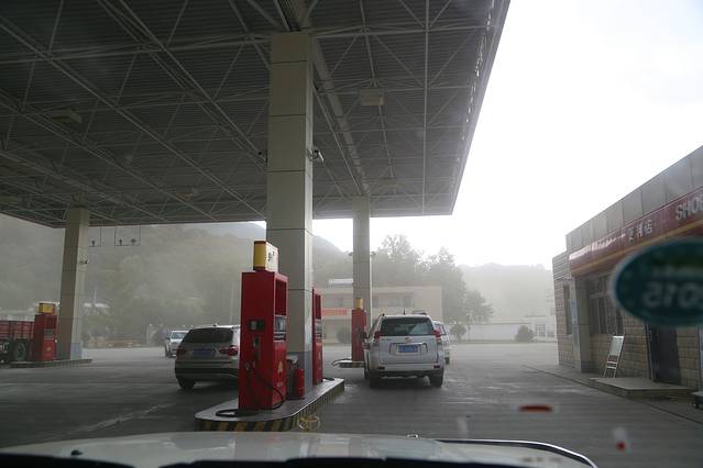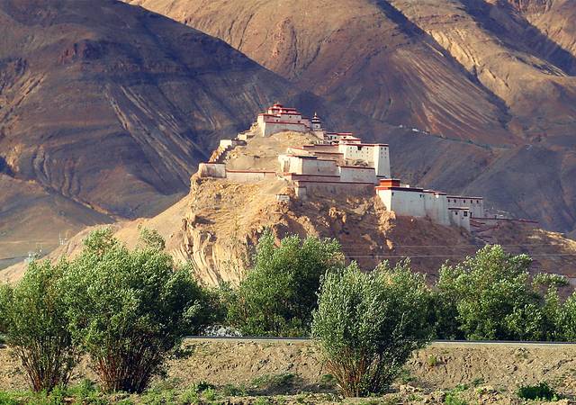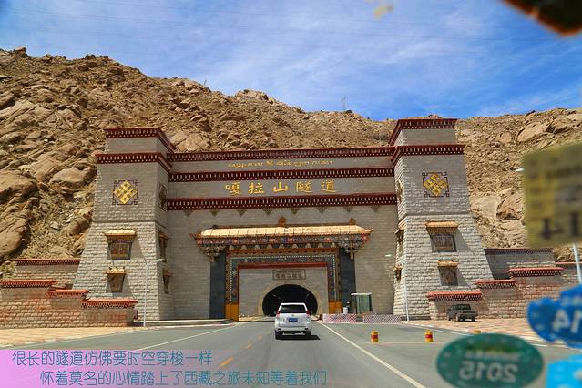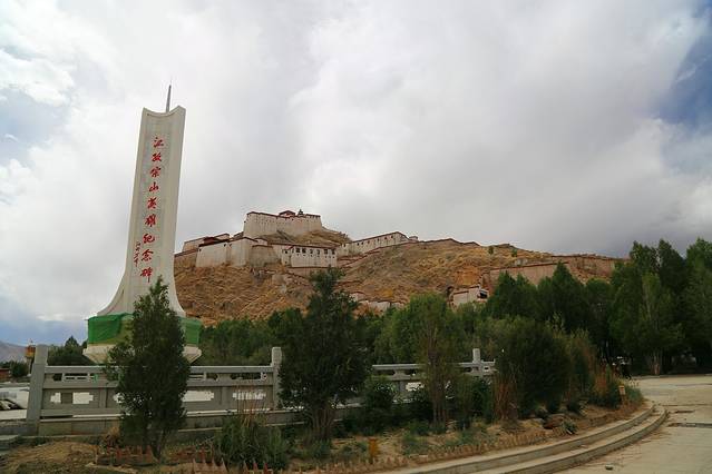 车子从拉萨开出来。黑漆漆的一片不知不觉中天已经蒙蒙亮了。路过了第一个景点松赞干布出生地。阴冷的天气让我连车都没有下。摇下车窗远远的拍了一张到此一游照。索性继续前行。我相信美好的景色就在不远处静静的等待着我的到来。