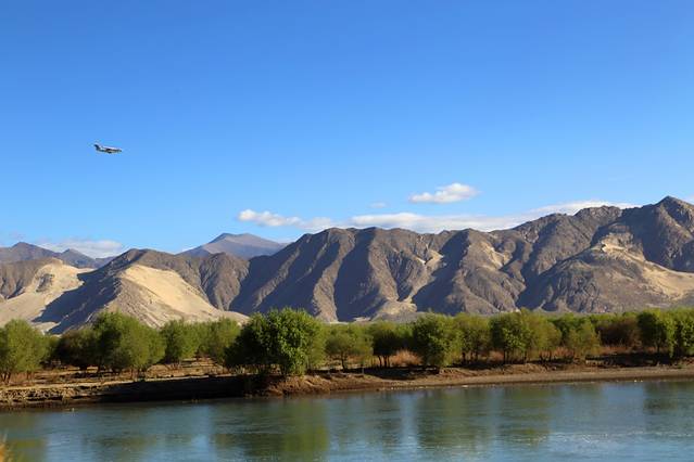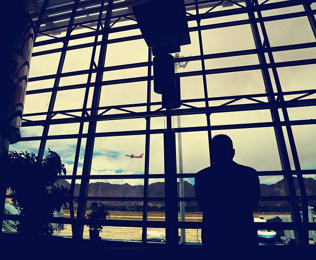 没有廊桥 直接粗犷的停在机场水泥地上。摆渡车会将你拉走。一下飞机刺眼的阳光灼烧着你的皮肤。但是你感觉不到特别的热。那么恭喜你。西藏到了。话说飞机滑行的时候还看见了很多军用迷彩涂装的战斗机。限于法律要求不上传相关图片。拉萨的贡嘎机场是军民两用飞机共享。还有很多外国的军用飞机