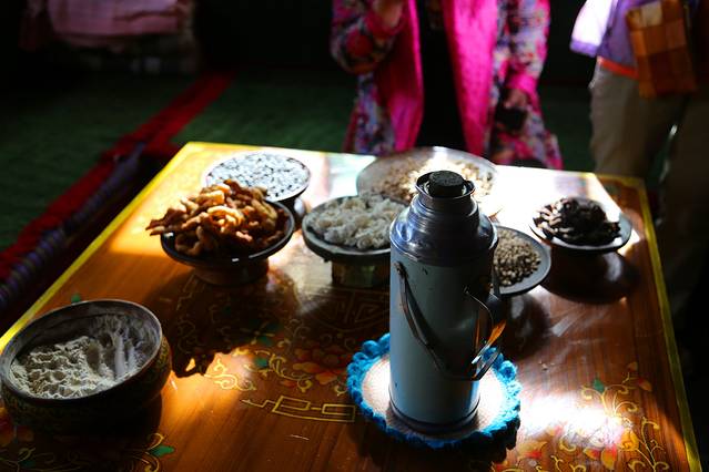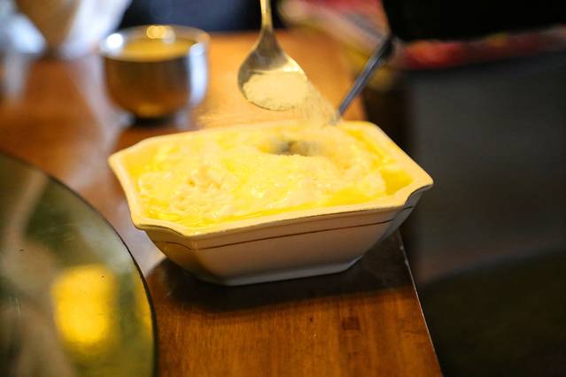 忘了叫什么了,反正是酸奶。然后浇上酥油。然后再撒上糖吃。重口味。大家慎重。