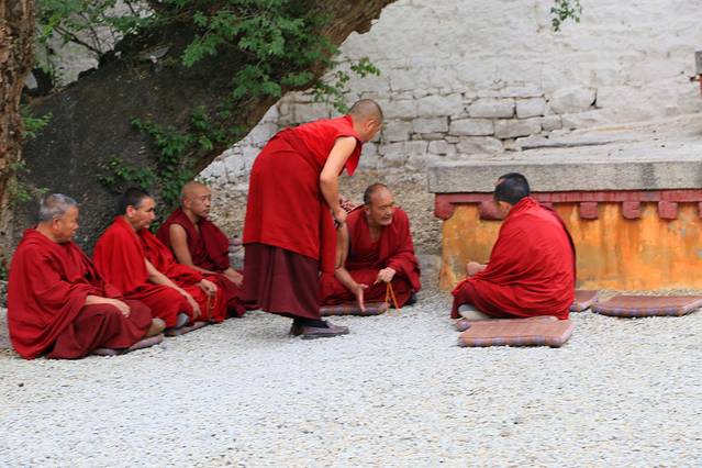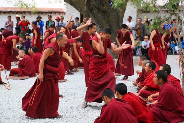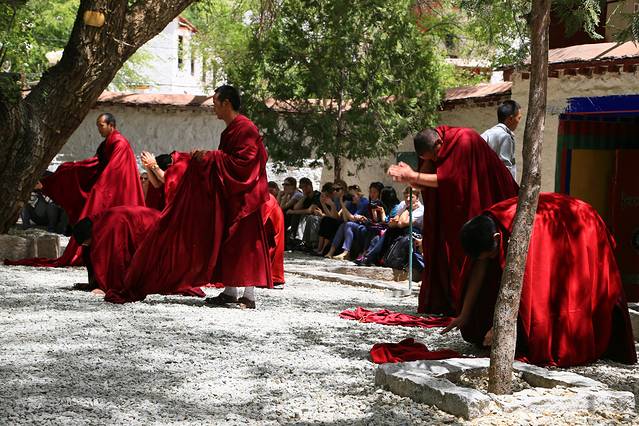 下午色拉寺主要为了辩经去的 ,话说50门票,没人查票。买票就是因为不用跟藏民一起排队可以直接进去参观游览。可是没有任何工作人员没有任何通道。足足顶着拉萨12点的太阳排了2个半小时的队伍进去参观。无力吐槽啊~