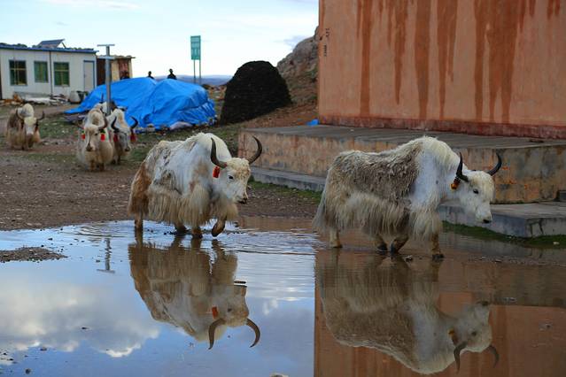 牦牛们陆续去上班了。不停的需要跟游客合照。