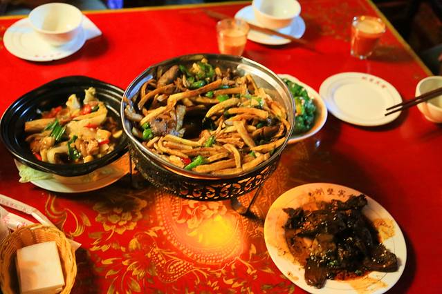 应该有10多种菜品。因为到的时候是下午2点了~依然照常供应。服务也好。木耳是非常推荐的因为是当地的林芝木耳非常好吃。外面买都买不到正宗的