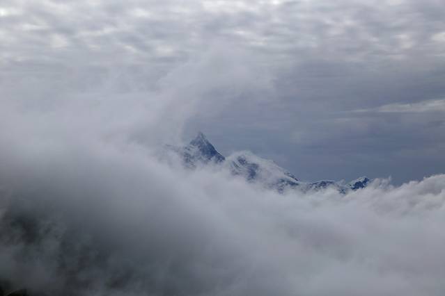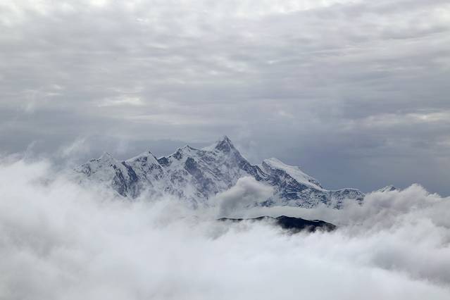 南迦巴瓦走到脚下近距离欣赏。可惜云层太多看不到全貌。所以说雾大的山顶看到了。现在晴空万里缺照样看不到。一切随缘