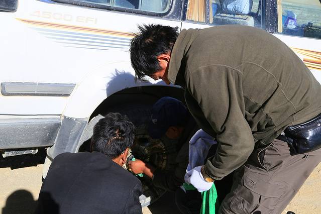 车辆坏的主要原因是后桥的螺丝断裂甚至有的已经不见踪影。而司机1方面没有及时检查车辆1方面因为车内嗨曲导致有螺丝掉落无法第一时间察觉。这就是好坏司机的区别,好司机可能一路上并不能跟你多么有说有笑哄你陪你玩的多嗨皮。但是最最重要的是安全的把你送到目的地。车辆免不了出问题尤其都是老爷车开了几十万公里了。但是关键的关键是好师傅可以遇事处理事尽量把损失降到最低。而一般的师傅呢只是开开车没事最好,一旦出事了束手无策了。受苦受累的还是乘客。所以包车的时候要慎重选择,不是会开认路就是好司机的。西藏地区毕竟不是自驾公路游。