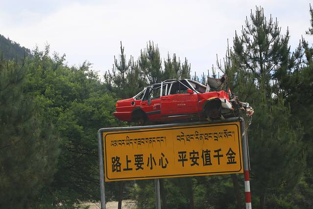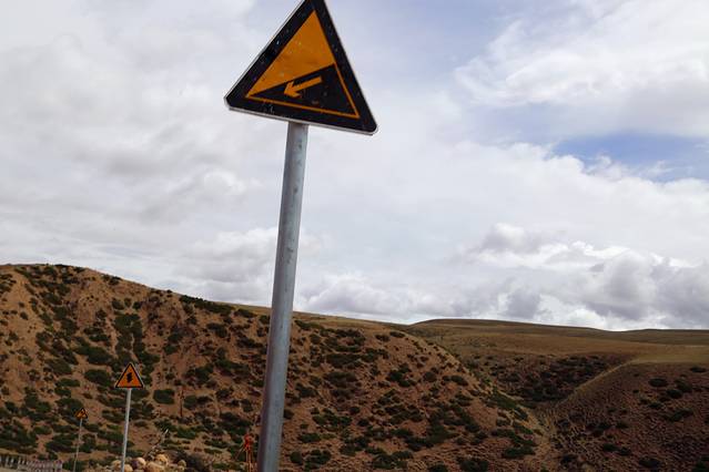 随处可见的标示。连续下坡。道路曲折 急转弯。 总之道路并不是一路平顺。需要谨慎驾驶,严禁疲劳驾驶。