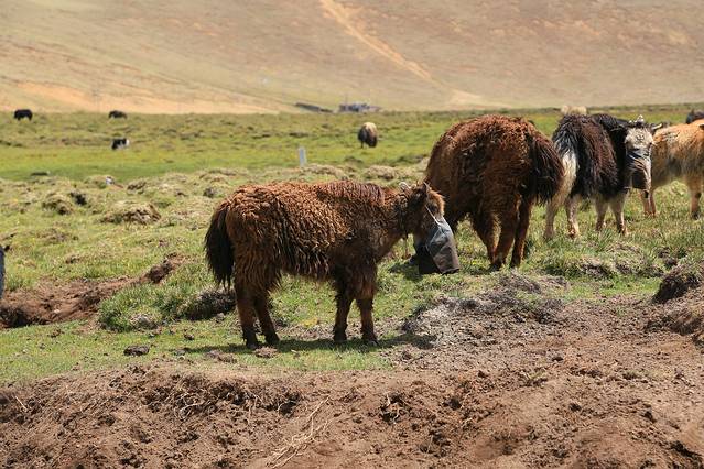带着口罩的牛牛。为了防止他们喝奶奶~不影响吃草。妈妈的奶奶要留着主人挤了做奶茶