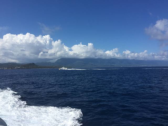从台东去绿岛的船上,因为船程要50分钟,建议大家准备好晕船药。