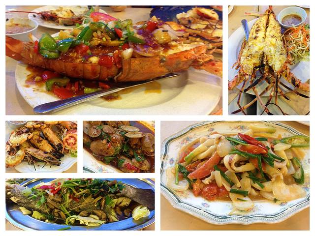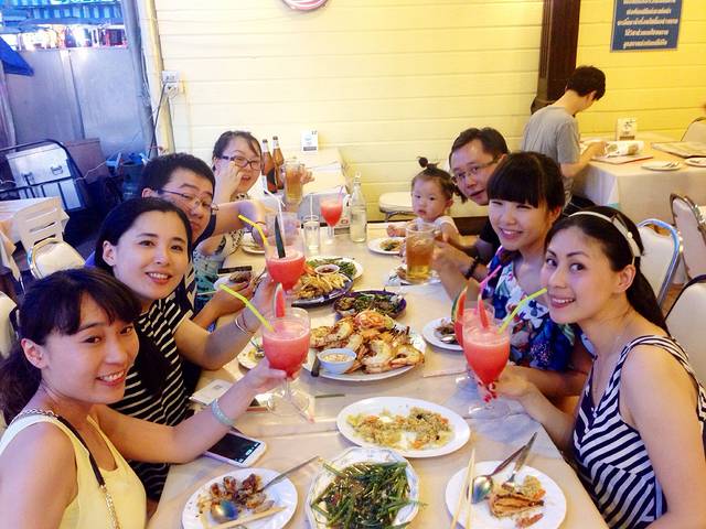 晚餐还是吃海鲜,今天去吃的是ko海鲜大排档,就在夜市里,门口有中文招牌,很好找。前面发的美食地图里也有的。强烈推荐哦,味道好,价格实惠。直接上图这一顿吃了1100多人民币,七个人(其实旅行计划中还有一家三口,因为let's sea不能带小孩,所以脱离队伍,总算在华欣最后一天聚齐了)