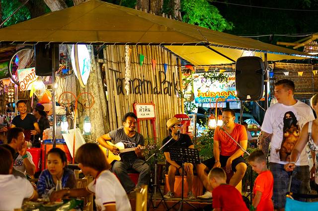 let's sea离cicada创意集市很近,正好是周五到周日晚上开放。从酒店到cicada的路上会路过一个小公园,这里是一个小夜市,全是本地人,也很有特色哦露天酒吧的乐队,感觉很嗨皮啊