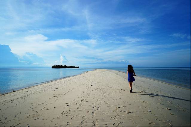 马达京岛分为大小两岛,中间是一条长长的沙滩连接,食宿都是在大岛,小岛是个无人荒岛。连接的沙滩每天会露出来几小时,这时候才能从大岛走到小岛上去,特别有意思。