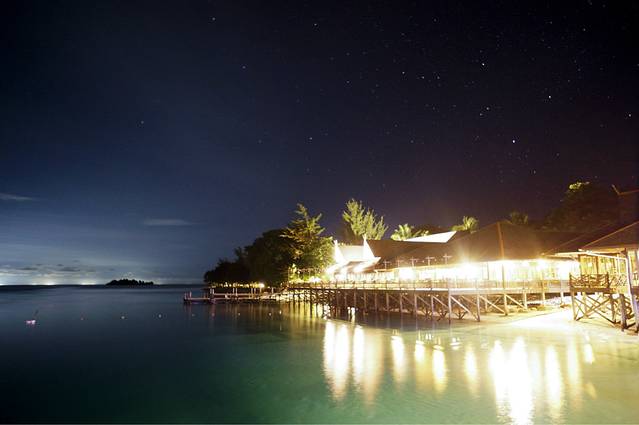 晚上有BEACH WALK的活动,10马币/人,小黑带着围着岛走一圈。据说能看到萤火虫,海龟,小鲨鱼。马达京主要的活动区域是上岛的一侧,所以岛背面的一侧我们没怎么过去。晚上另一侧是完全黑的,没有灯。两个女生还真不敢单独行动。BEACH WALK要穿过一个树林,这个时候小黑让我们把手电关掉,他们摇动了那些树,就看到一片萤火虫,那种感觉真是难以形容。一起参加这个活动的,大部分是来度蜜月的新婚夫妇,这种画面下,我觉得应该相互亲吻才应景吧。可惜萤火虫我是真的拍不出来啦。大家想象一下吧。。。。。