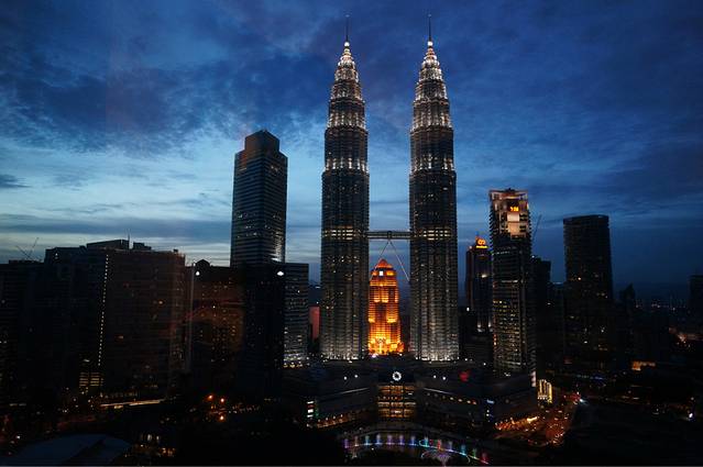 从房间看到的双子塔,你更喜欢哪个时段呢。