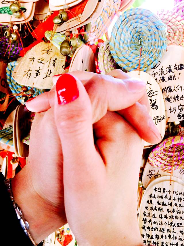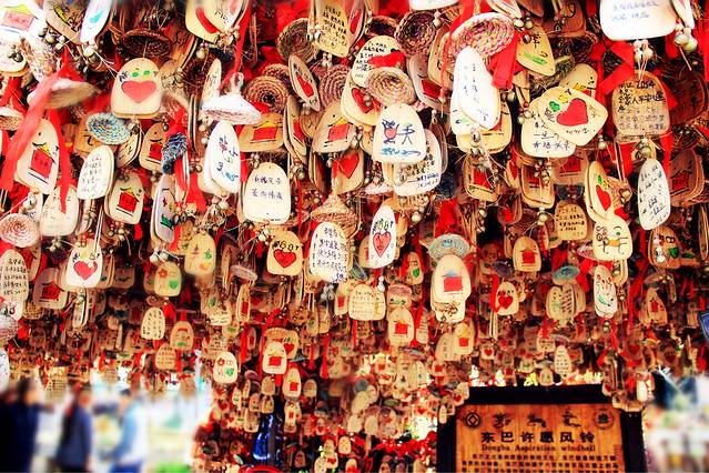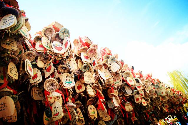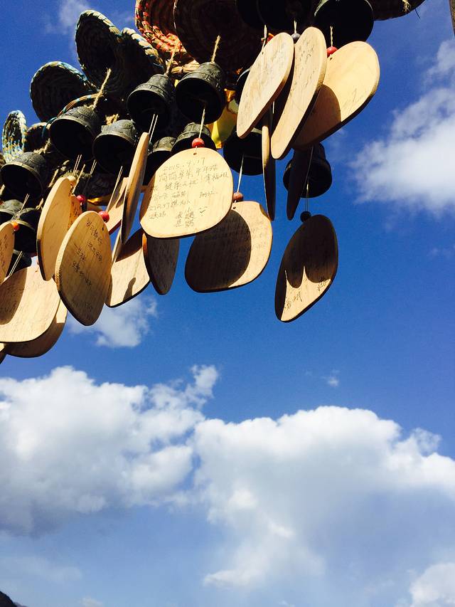 大水车旁标志性的许愿驼铃挂的琳琅满目,承载着每一个人心底的愿望。