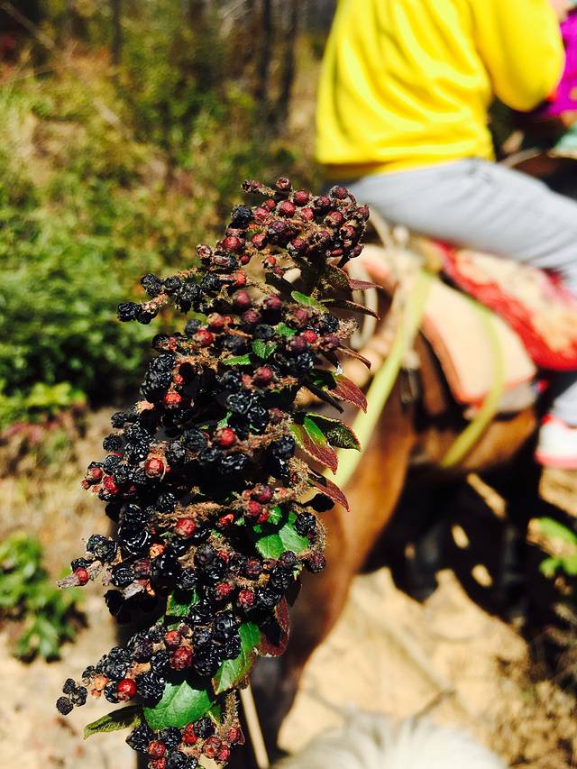 山路颠簸,不乏惊险与刺激,有时候马儿能成九十度爬山,带我们上山的大爷身体很棒一口气就爬到了山顶,路上还给我们摘野山梅,酸甜可口~