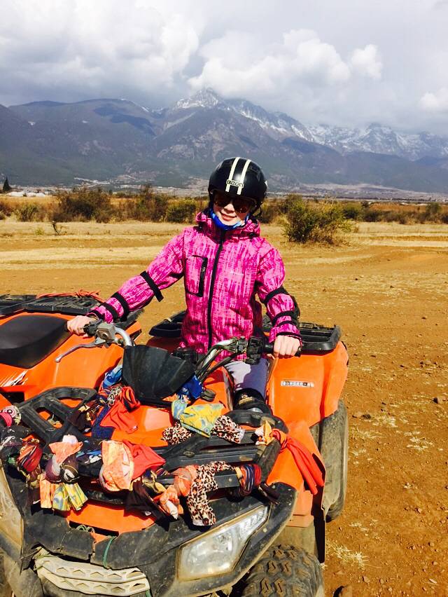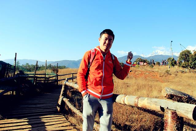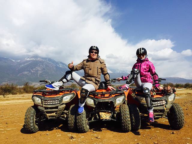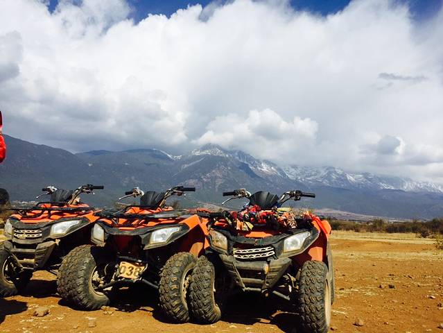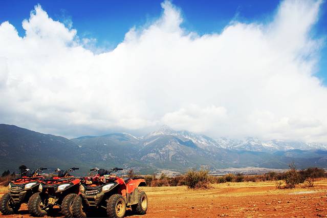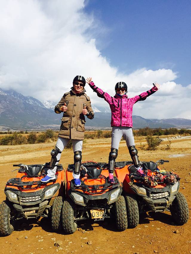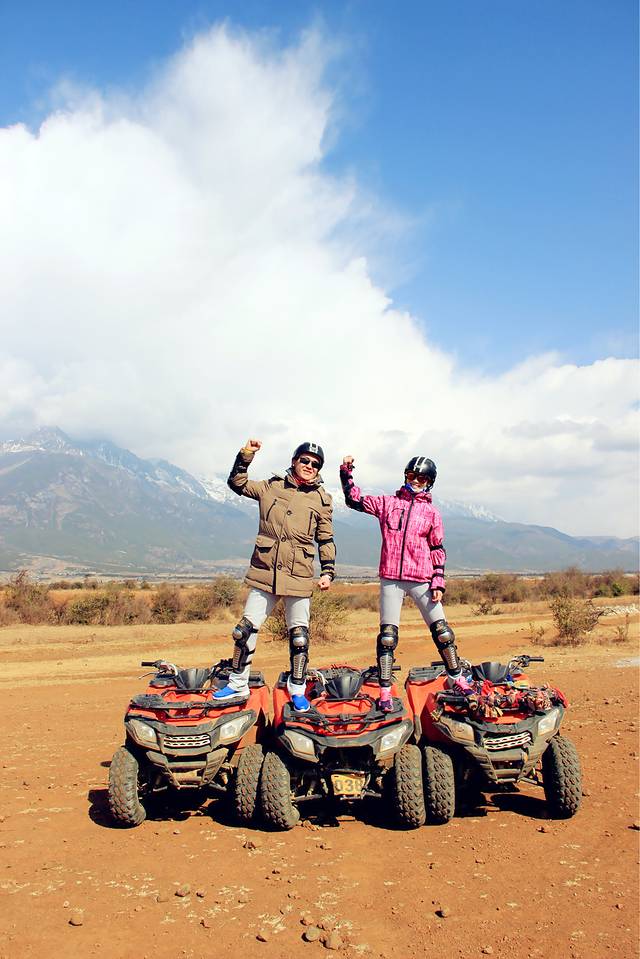 这个活动是从网上定的,有A路线和B路线,我们订了个路线较长的,三四个小时的车程,从白沙一直开到了玉龙雪山的脚下,空中有消防直升机盘旋的旅程更加惊险刺激。