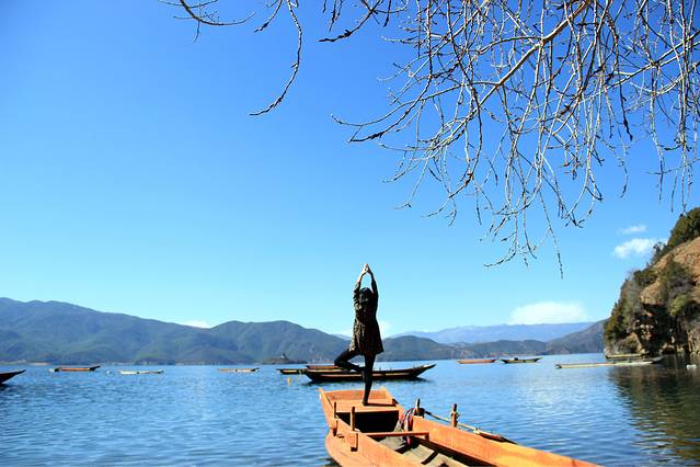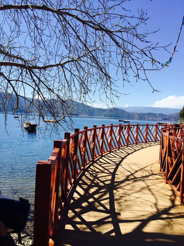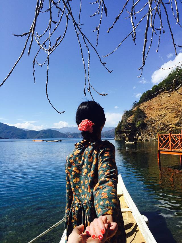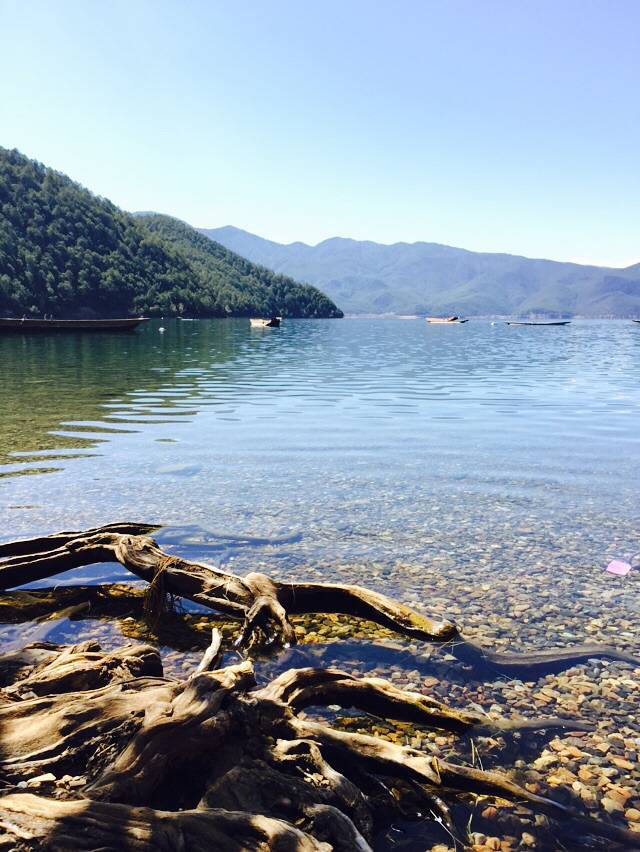 这张照片是初见泸沽湖的照片,当时已经被眼前的景色美呆,竟然忘了在这里合照。泸沽湖——摩梭女儿国,第一眼看到它就爱上了这里。
