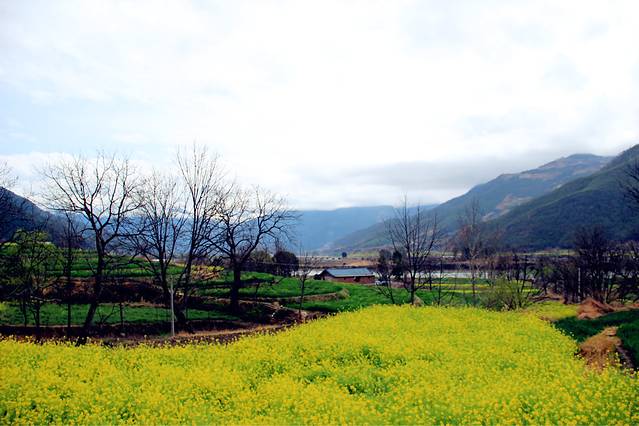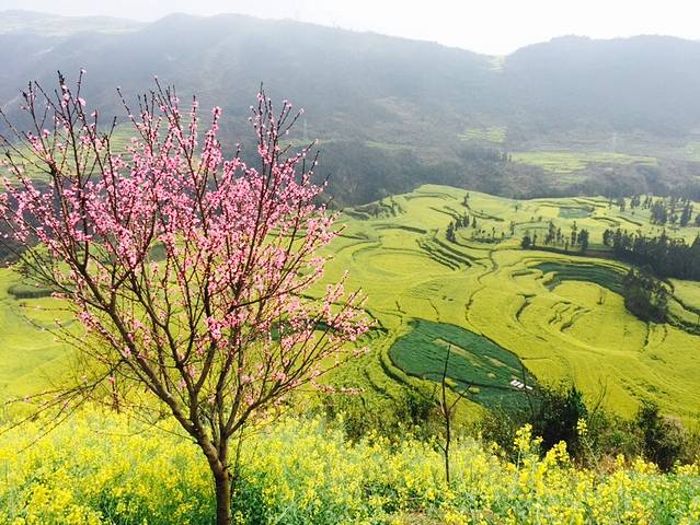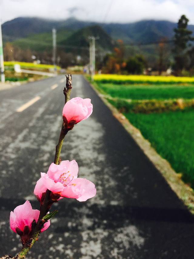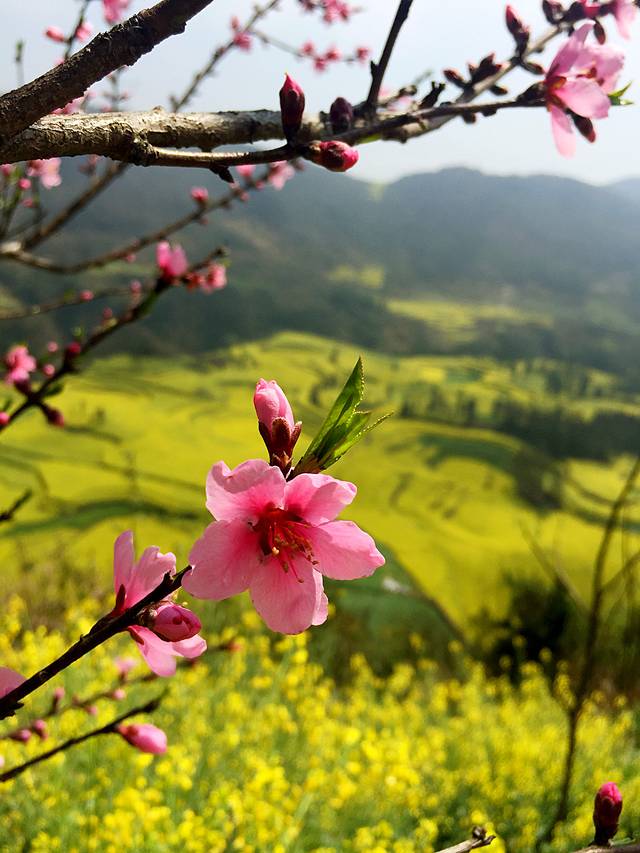 山下桃花、油菜花已经开成一片,真的是从冬天穿越到了春天…
