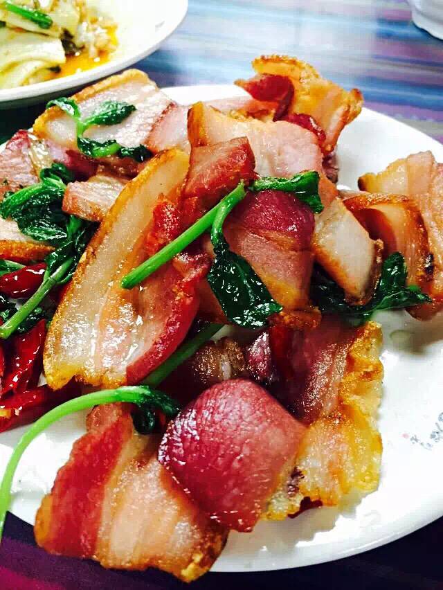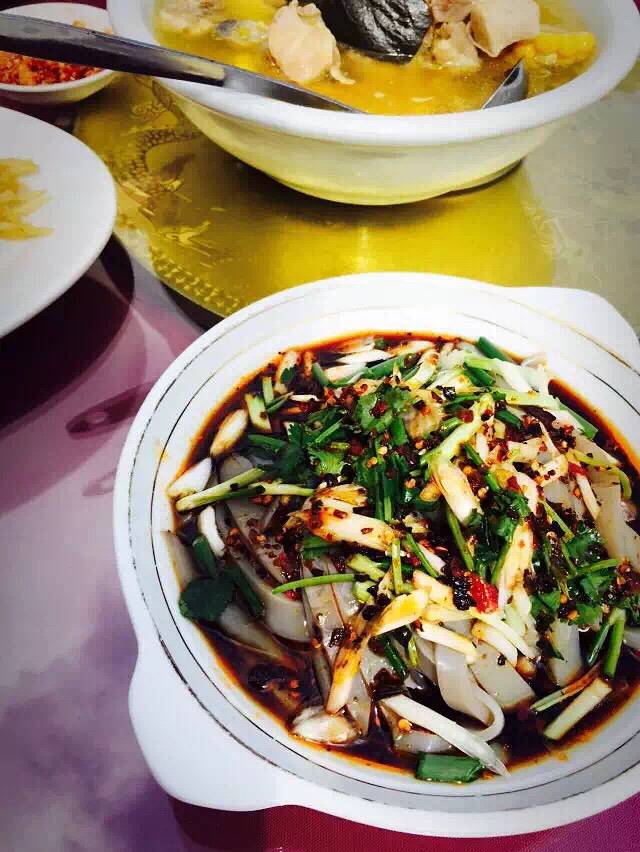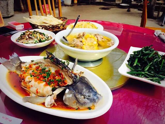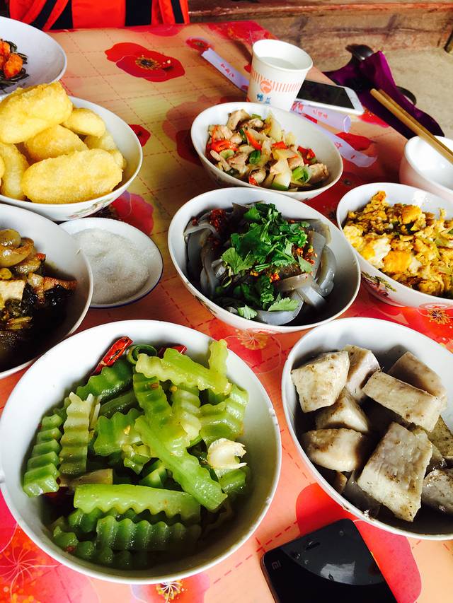 午饭,八大碗哦!就四个人吃饭,老板娘还给我们多加一碗菜,撑的要走不动了…
