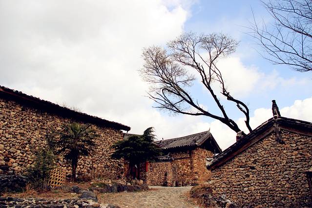 这座村子不大历史悠久,所有的墙面都是用石头一块一块垒起来的。