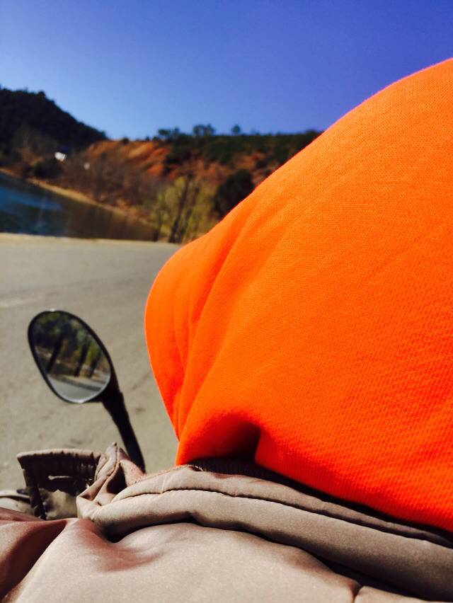 游湖是环山公路,这里的电动车都是改装后的动力很足,山路崎岖需小心行驶,路上也不时有运石头的大货车奔驰而过。