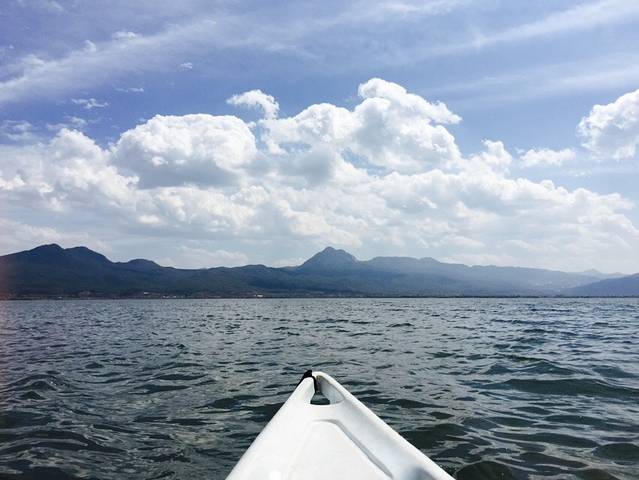 看完日出后,有些游客拼车游湖,为了自由游湖我们则租了辆电动车。