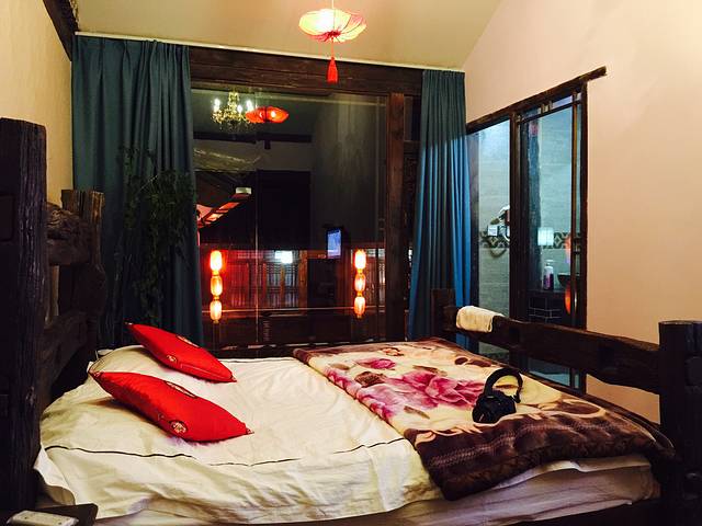 客栈管家牛牛给我们换了个房间,入住二楼,这无敌的落地窗,爱死啦~