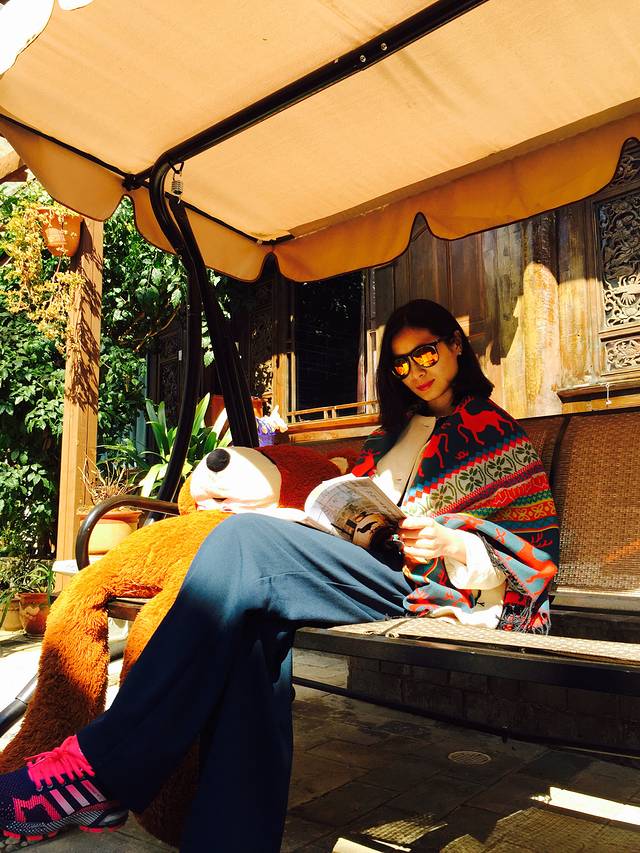 院子里有个大吊椅,因为有小熊的陪伴,一个人坐在上面也不会觉得孤单~