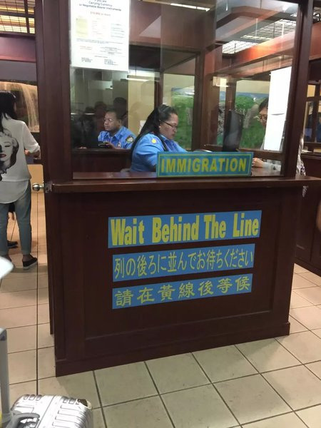 旅程第二篇:帕劳机场是很小的,一眼就能忘得到,排队出关的人也很多,所以一下飞机的这一道要快,否则非得排上一个小时才能出去。入境后记得一定保存好出境卡,如果丢失会被罚款25美金每张,离开帕劳时每人还要支付给机场50美金的环保和离境税。所以可别都把钱花没了,建议多带些美金,帕劳很多地方是不能刷卡的。