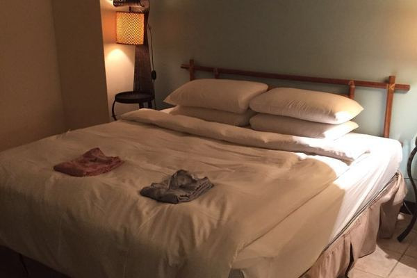 一出来就看见了接我们的导游穿的是蓝色的衣服,上面印有KBT的标志,接我们的导游是KBT地接社里面很多名的导游叫Gary,很帅气的台湾导游。我们前往酒店做的是中巴车,这一路Gary简单的介绍了帕劳,我们下榻的是帕劳日晖酒店,离机场很近,我们不到10分钟就到达了酒店,Gary导游给我们都办好了入住手续,约定好了明日的出海时间才离开。心总算落地了,可以好好的睡觉啦~!我的床啊~!我来了