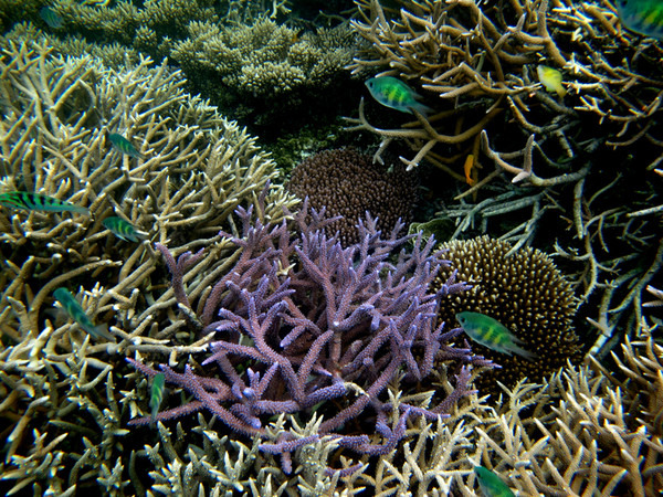 穿过红树林来到了几处海洋仙境之称的,《七彩指状珊瑚区》和《巨型玫瑰珊瑚区》,桌面珊瑚保育区》和可于洛克群岛大断层比美的《北岛大断层》在这里可以看到各式各样、色彩鲜艳的珊瑚,以及成群大型的鱼群,这时离开帕劳带给我的最后感动~!