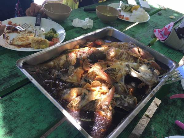 今天海钓的成绩还不错,我们有烤鱼吃,也有鱼汤喝,今天导游告诉我一件特别巧的事,我和他是同月同日生的,中午位我们做了牛排餐,非常美味,鱼汤也超好喝,我喝了两碗 ,还有其它的导游到我们这边蹭牛排吃呢