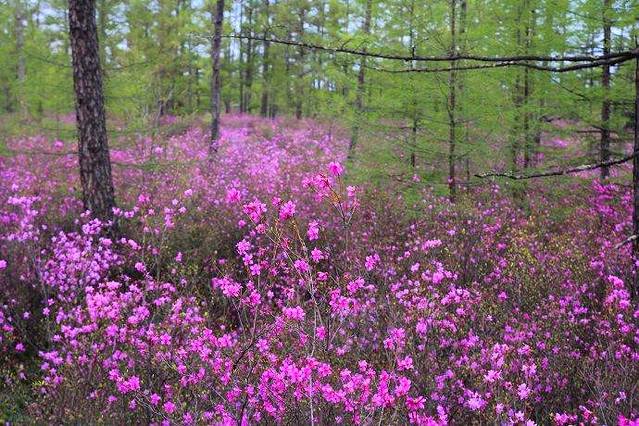 五月的伊春山花烂漫,芳香四溢正是观赏杜鹃花的好时节。5月10日——25日杜鹃花观赏节,姹紫嫣红的杜鹃花衬着尚未完全消融的白雪,在沉睡万年的玄武石上恣意奔放,形成美丽的天然的杜鹃花的海洋,来到这里宛如置身仙境