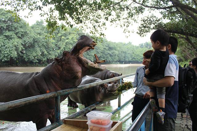 第一次这么近距离的看见河马并喂他,鳄鱼公园的河马是一家三口在一起,爸爸叫大傻,妈妈叫豆豆,女儿叫莉莉。两个饲养员照顾的这三只河马特别的好,一点都不臭。看他们吃草才知道,原来他们是用嘴巴子往嘴里送东西。一盒胡萝卜+番薯,10块,大傻会张嘴接着,但是大轩每次都扔地上。