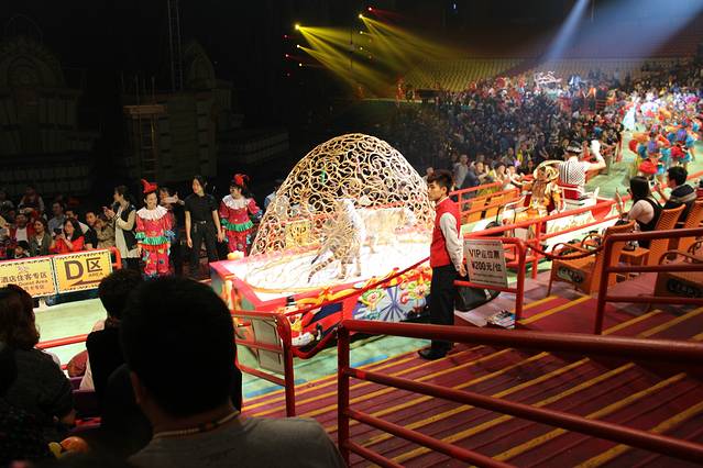 特别提醒3,宁可坐的靠上也别坐的太偏,因为主席台、贵宾区在中间,演员也只朝着一个方向表演,如果坐到了A、B、E、F区域,整个演出都看不到演员和动物们的脸。就酱紫。