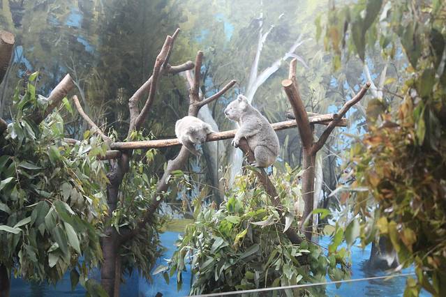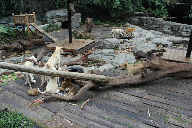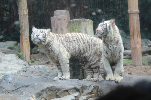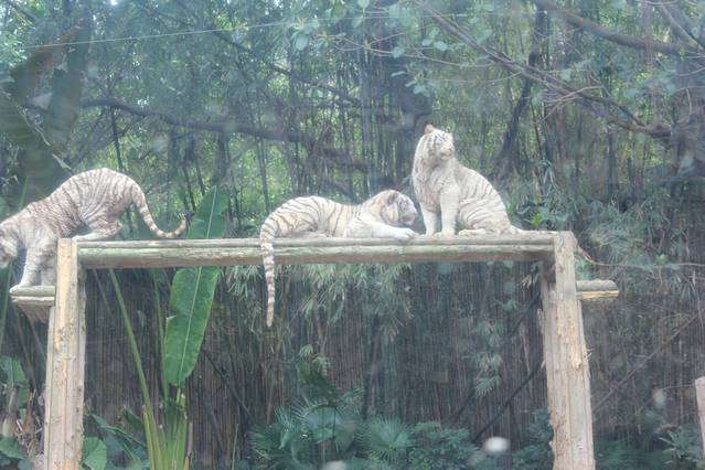 第二,下了小火车,顺着路是可以走到小火车入口附近的,建议大家先去看百虎山、大熊猫、考拉什么什么什么的,因为下午再看这些动物几乎都没有精神,都在睡觉。白虎跳水的表演每逢半点和正点演出,但是场场人都很多,而且觉得老虎挺可怜的,为了一点肉连树都会爬了,而且几乎整天都处于湿身状态。看了一会被挤出来了,人多每人会照顾孕妇的。