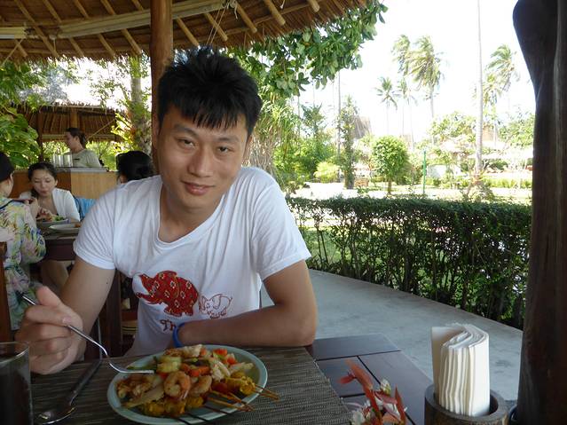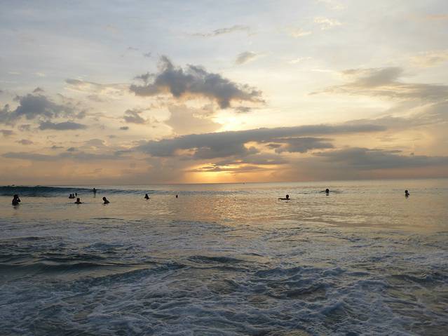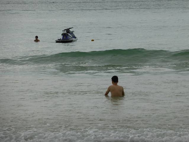 吃好喝好,晚上去海里游泳,很高的浪哦,好刺激