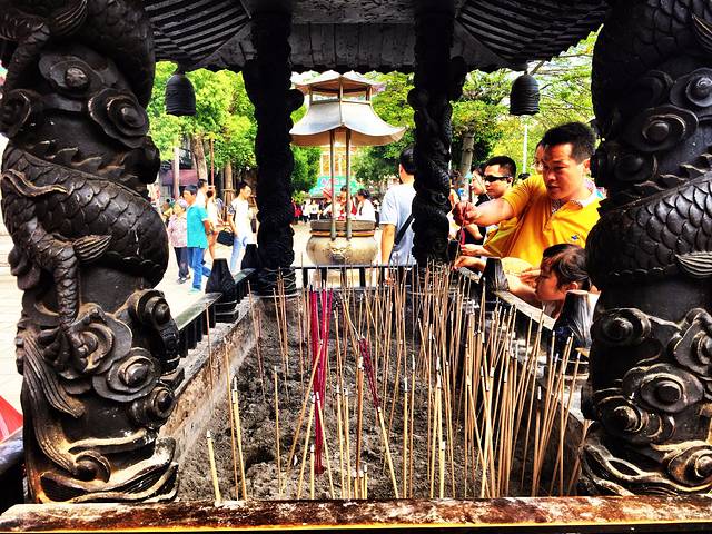 寺庙会有功德香,每人可免费领取一跟,对面有免费的护身符可以领取。