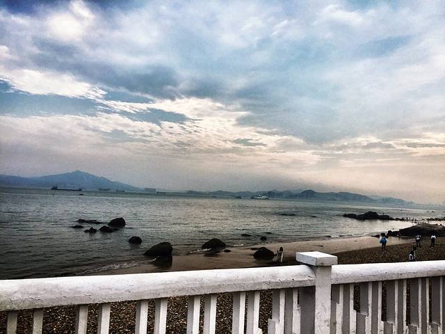 计划从酒店骑到中山路步行街。中间遇到了一个沙滩,特别的静。沙质都像一面镜子,后来看地图这应该是黄厝海滩了。