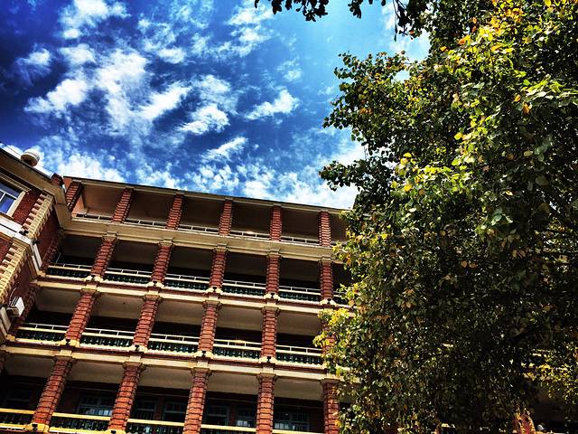 这一个个的红门就是一个个男生公寓了,没有门卫和护栏什么的,大敞四开的,路过的女生就随便往里进。。。不得不说电影里看到的女生随便进男生公寓的事真的可以发生。。。
