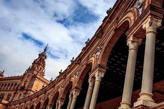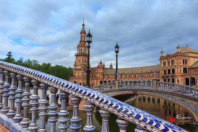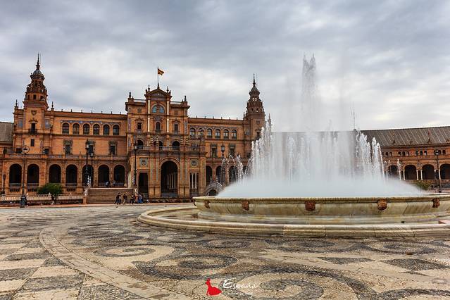 始建于1929年,为伊比利亚美洲博览会所兴建。整个建筑呈半圆形,外部用各种瓷砖镶嵌而成,代表原西班牙58个省。楼群周围有一条人工小护城河,上面建有数座小桥,气势宏大,别具一格。