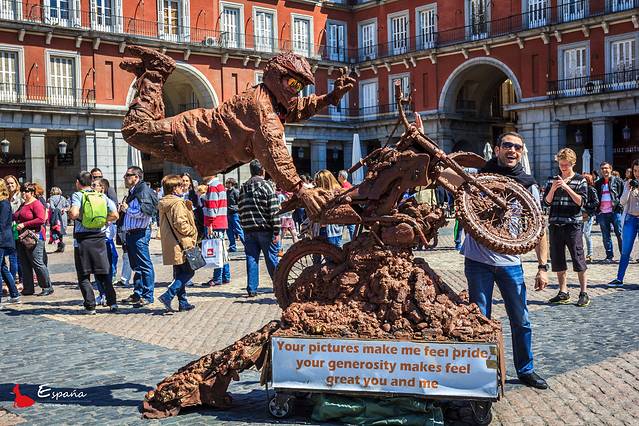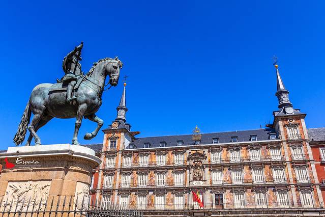 长方形的广场,被三座楼环绕,中心是腓力三世的骑马雕像。广场上熙熙攘攘,充满生活氛围。不少街头艺人使出浑身解数,技艺水平还是不错的。