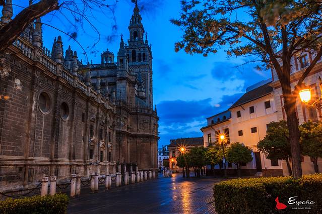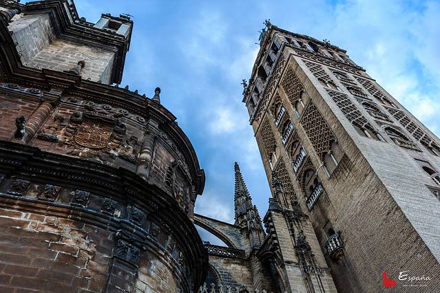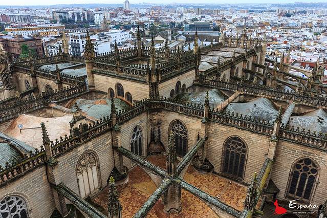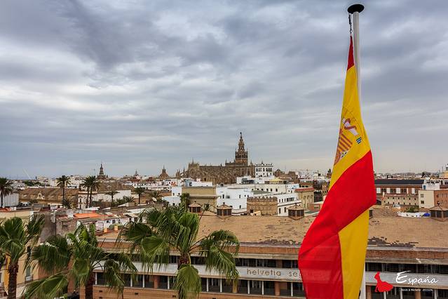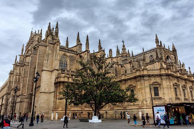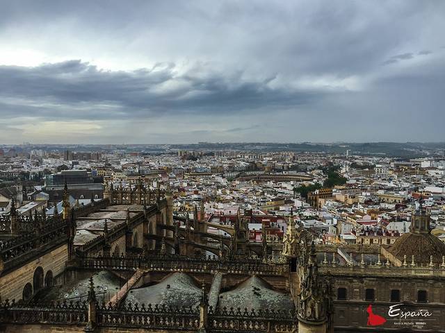 【Day 5-4/8】塞维利亚古迹游。塞维利亚王宫,黄金塔,圣母大教堂,还有牛逼的吉拉达塔。一阵烟雨一阵晴,午饭后都市阳伞,傍晚一顿弗拉门戈舞佐餐别有风情,好看到晚上都没有吃饭。