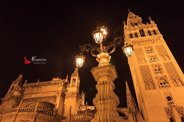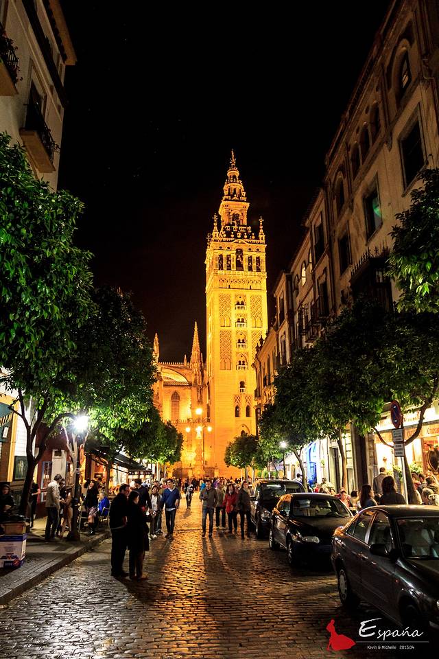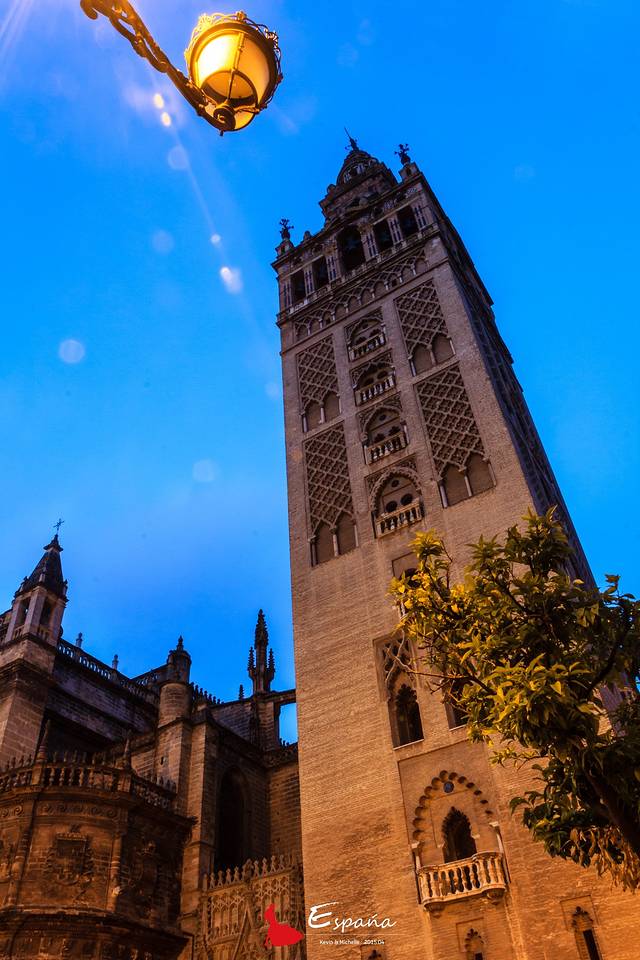 夜幕下的希拉达塔。景观灯到深夜是会关闭的,即使这样,高大依旧。