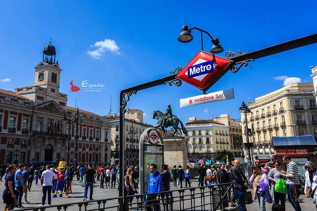 太阳门是西班牙首都马德里的一处广场,座落于马德里市中心,也是西班牙公路网的中心点。广场呈半圆形,意指初升的太阳。广场上有一个“零起点”标志,西班牙全国所有的公路里程碑都从这里开始向外计算,马德里市的门牌号也是以这里为起点的。可惜的是没有看到马德里的市徽,就是那头攀依在莓树上的棕熊的青铜塑像。