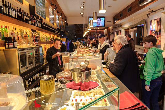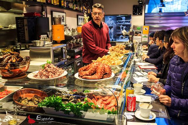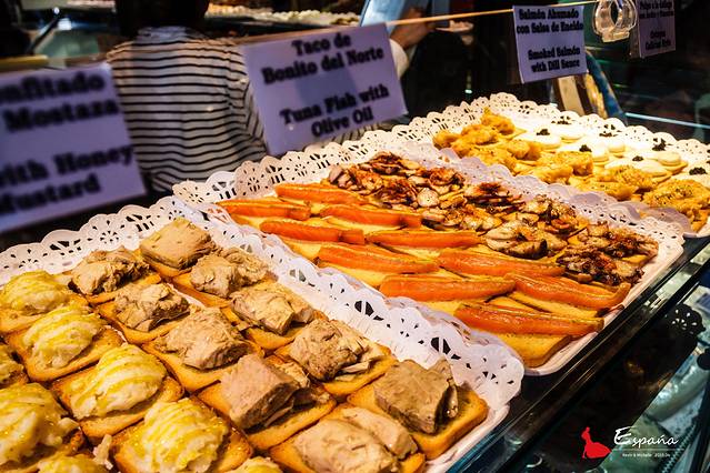 在这种情况下,tapas应运而生,简而言之就是咱说的小吃。原料五花八门,面包,蔬菜,海鲜,酱料,用牙签一串,或者直接小盘上桌。不占肚子,但绝对解馋。像极了四川的串串香,只不过更加丰富,也更加诱人。漫长的午休时间,舒缓的夜色陪伴,都为tapas提供了发扬光大的绝佳土壤。