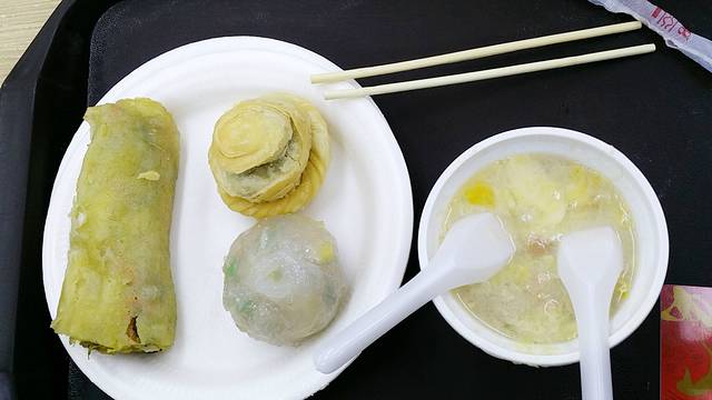 北方女汉子真心吃不惯,第一口还不错,甜甜的。但是手掌心大小的碗只吃了一半就甜的想哭了,腻啊!!主料是花生和鸡蛋。其他三个是去腻的,春卷水晶包等,口感一般。