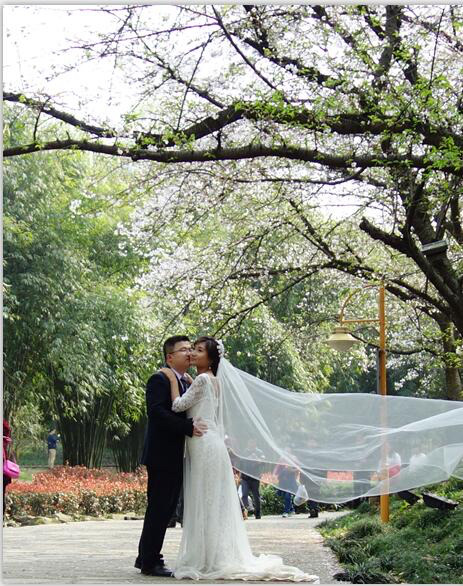 新娘的头纱随着风儿嬉戏