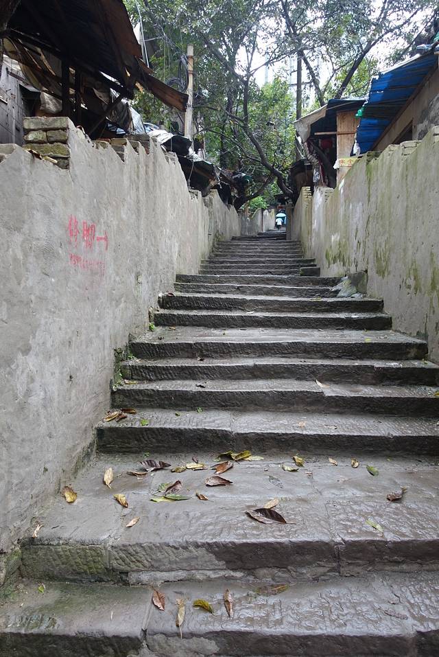 在渝中区法院旁边又山城第三步道,在这里可以体验到山城爬坡的特色,全程三千米。