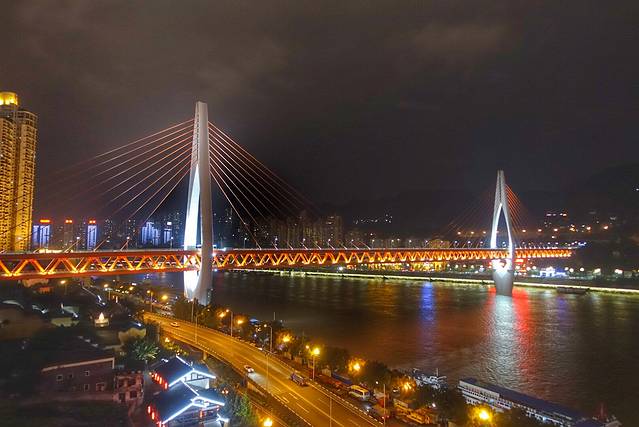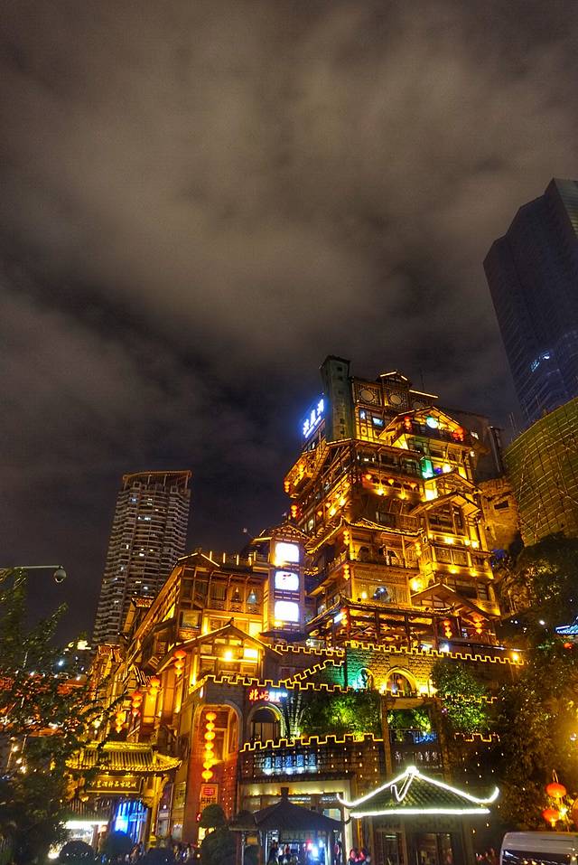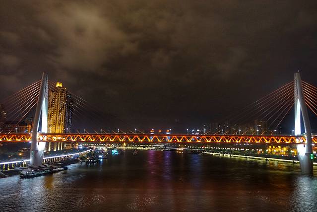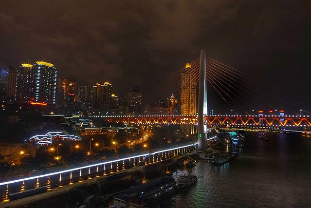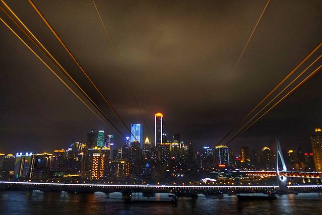 夜里的重庆,灯火通明的很不真实,看似繁华热闹,却让人感到孤单和冷漠,时刻提醒这你不属于这里。与白天的老城的破旧形成了鲜明的对比。