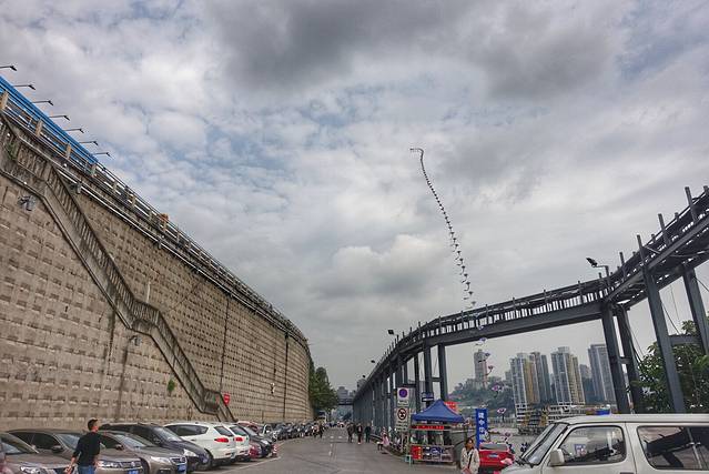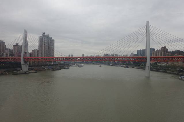 由于我们时间紧任务重,就没有仔细游览山城步道。下来打车直奔索道,单程10元,往返20元。从上站(新华路索道)出发,到南岸(上新街索道)。